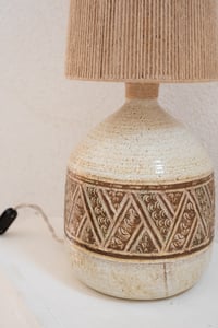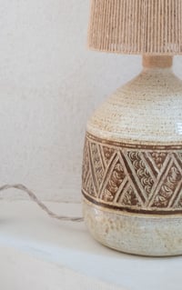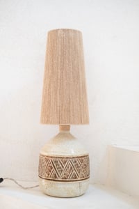 Pied en céramique signé Marcel Giraud dit Cardelle, artiste céramiste à Vallauris dans les années 60. Ce pied de lampe est en faïence beige moucheté et orné d'une frise géométrique.
